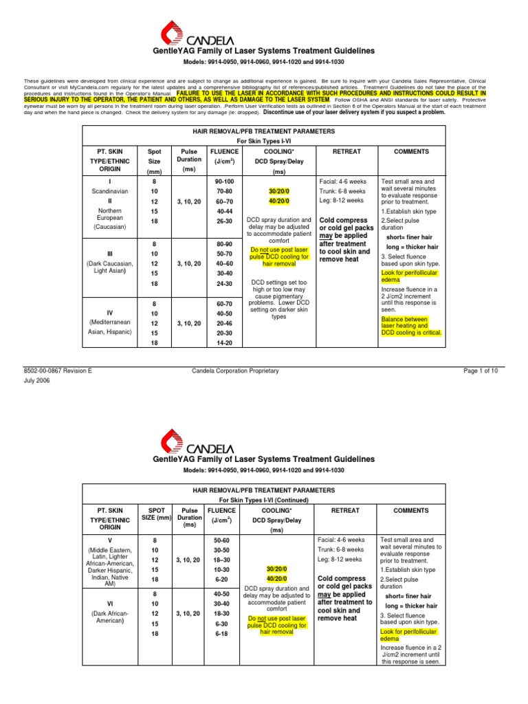 Candela yag laser settings.